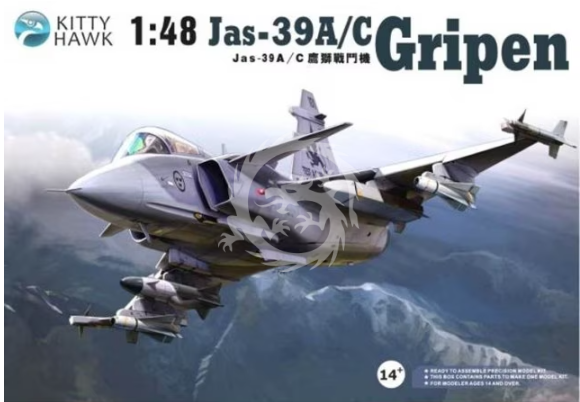Model **JAS-39A/C Gripen** firmy Kitty Hawk (KH80117) w skali 1/48 to bardzo szczegółowy i dobrze zaprojektowany zestaw, który oferuje dokładne odwzorowanie nowoczesnego myśliwca wielozadaniowego. Dzięki swoim skomplikowanym częściom i różnym opcjom prezentacji, stanowi satysfakcjonujący projekt dla doświadczonych modelarzy zainteresowanych nowoczesnymi samolotami wojskowymi.