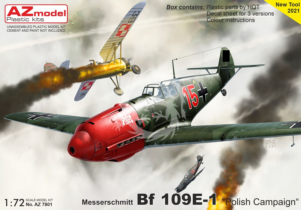 Nowy model Messerschmitta Bf 109E-1 z Kampanii Polskiej od AZ Model zawiera kalkomanie do trzech wersji niemieckich sił powietrznych.