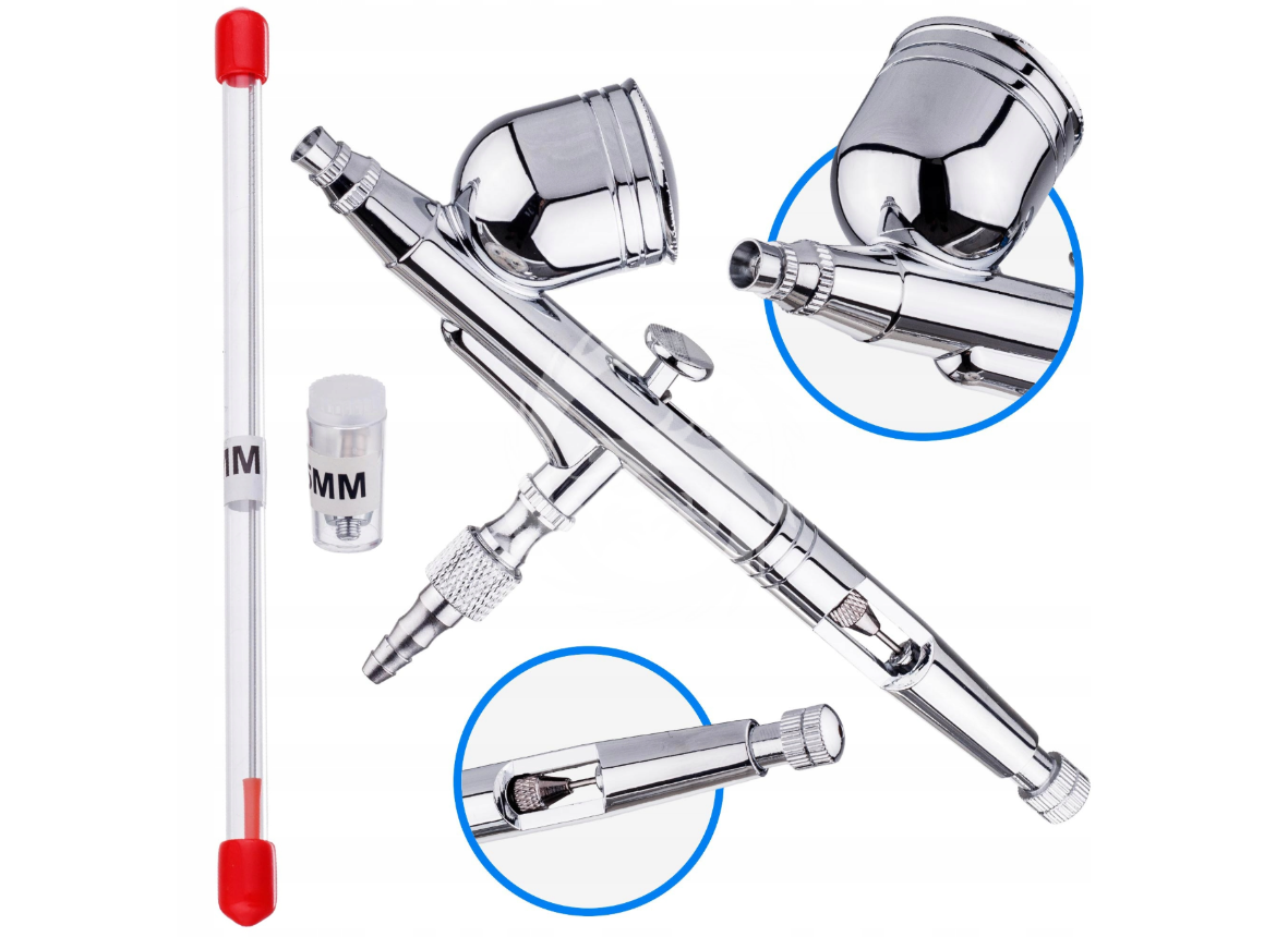 Dysza 0,3 mm jest najbardziej uniwersalna i nadaje się zarówno do cieniowania, zamalowywania jak również do rysowania cienkich kresek. Natomiast dysza 0,2mm jest idealna do najdrobniejszych, najprecyzyjniejszych prac.