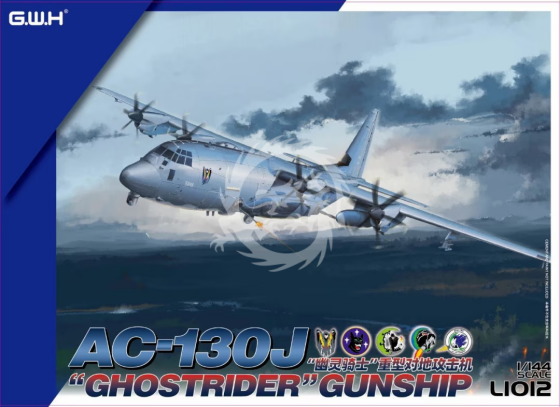 Great Wall Hobby L1012 USAF AC-130J "Ghostrider" Gunship 1/144 to plastikowy model do sklejania w skali 1/144, przedstawiający najnowszy amerykański samolot wsparcia ogniowego AC-130J "Ghostrider", będący zaawansowaną wersją uzbrojonego transportowca C-130 Hercules. Maszyna ta służy w USAF (Siły Powietrzne Stanów Zjednoczonych) i została opracowana na bazie platformy MC-130J Commando II, specjalnie dla jednostek Air Force Special Operations Command. Samolot jest używany w czasach współczesnych – od 2017 roku.