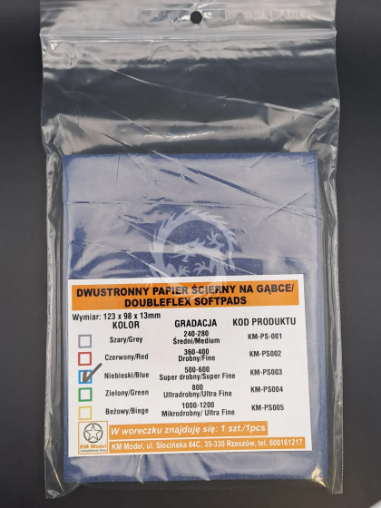 DWUSTRONNY PAPIER ŚCIERNY NA GĄBCE - GRADACJA 500-600 - KM-PS-003