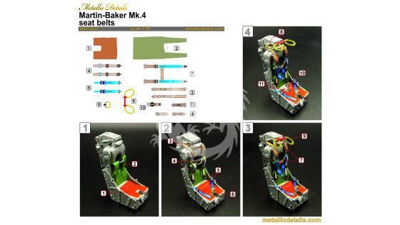 Wyjątkowo szczegółowe, drukowane w 3D fotele wyrzucane Martin-Baker Mk.4, dostępne w skali 1/72. Każdy zestaw zawiera dwa fotele, odpowiednie zarówno do samolotów jedno-, jak i dwumiejscowych. Zaprojektowane z dbałością o precyzyjne kształty i precyzyjne detale drukowane w 3D, aby zwiększyć realizm kokpitu i wierność historyczną. Idealne dla modelarzy budujących samoloty wyposażone w fotele Mk.4, takie jak Hawker Hunter, Jet Provost, Sea Vixen, Folland Gnat, Mystère IV, MB-326 i inne odrzutowce z lat 50. i 60. XX wieku.