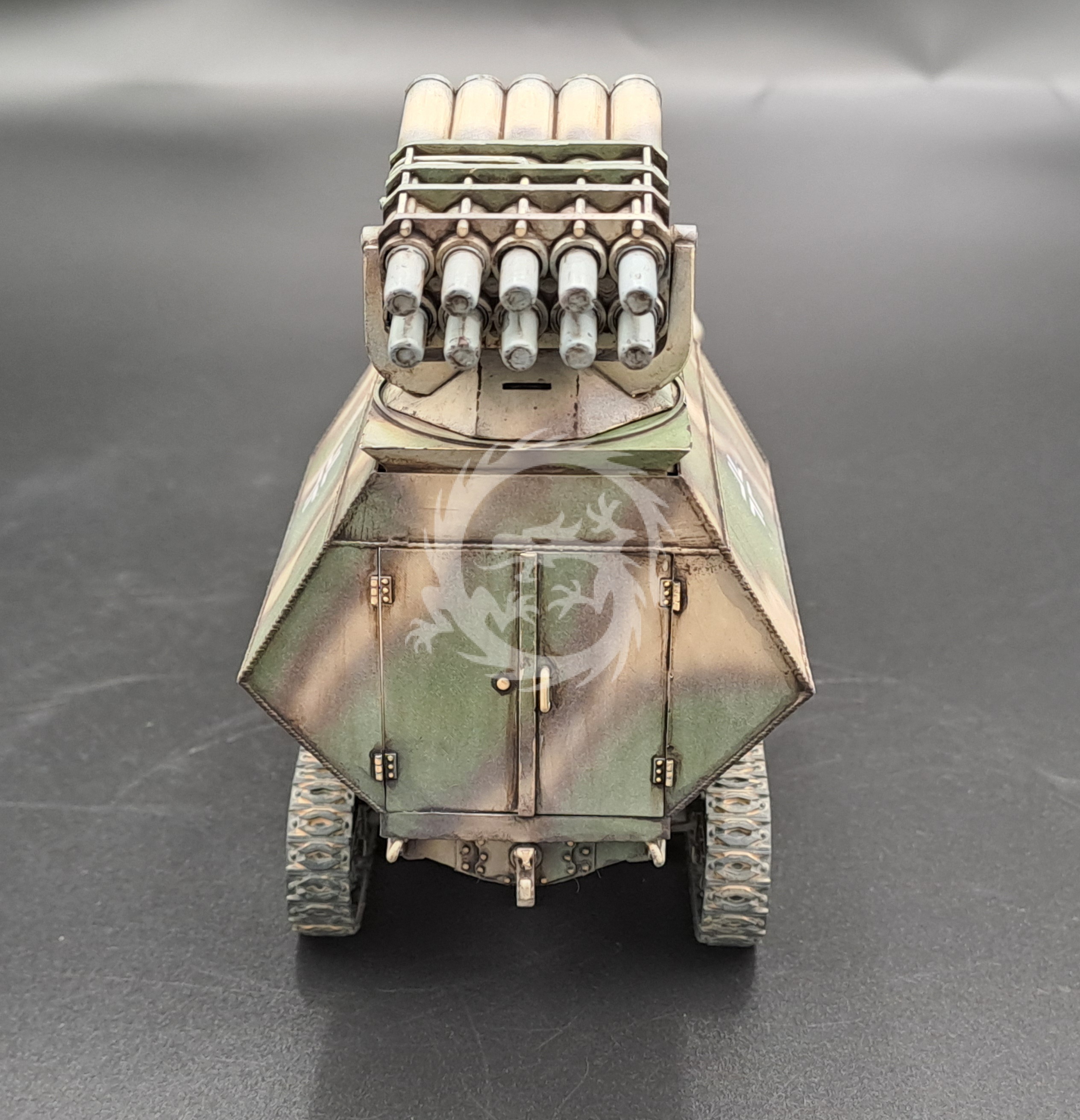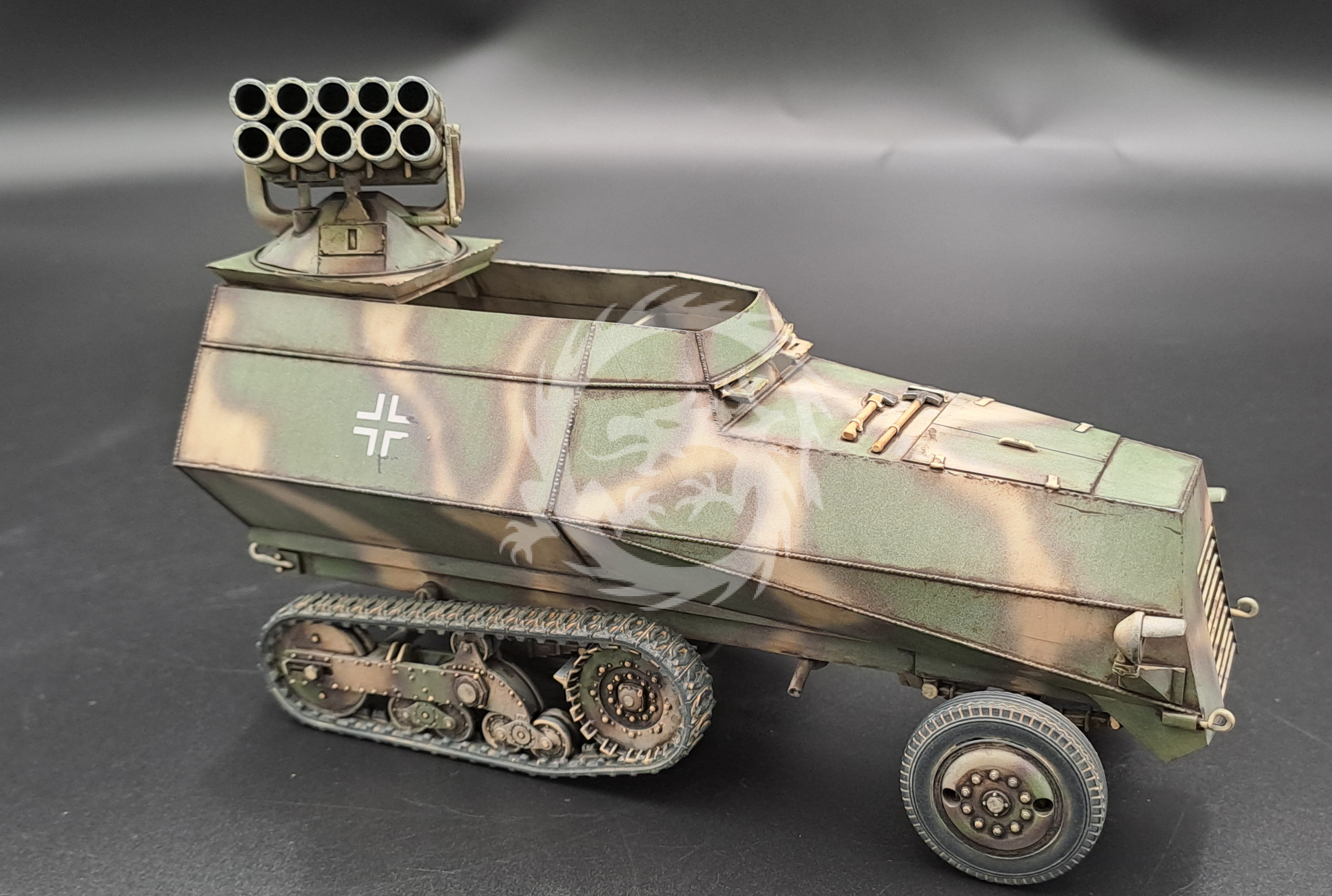 - Typ pojazdu: przebudowany i opancerzony ciągnik artyleryjski Somua, przejęty przez Niemców po kapitulacji Francji, przekształcony w nośnik wyrzutni rakietowej.