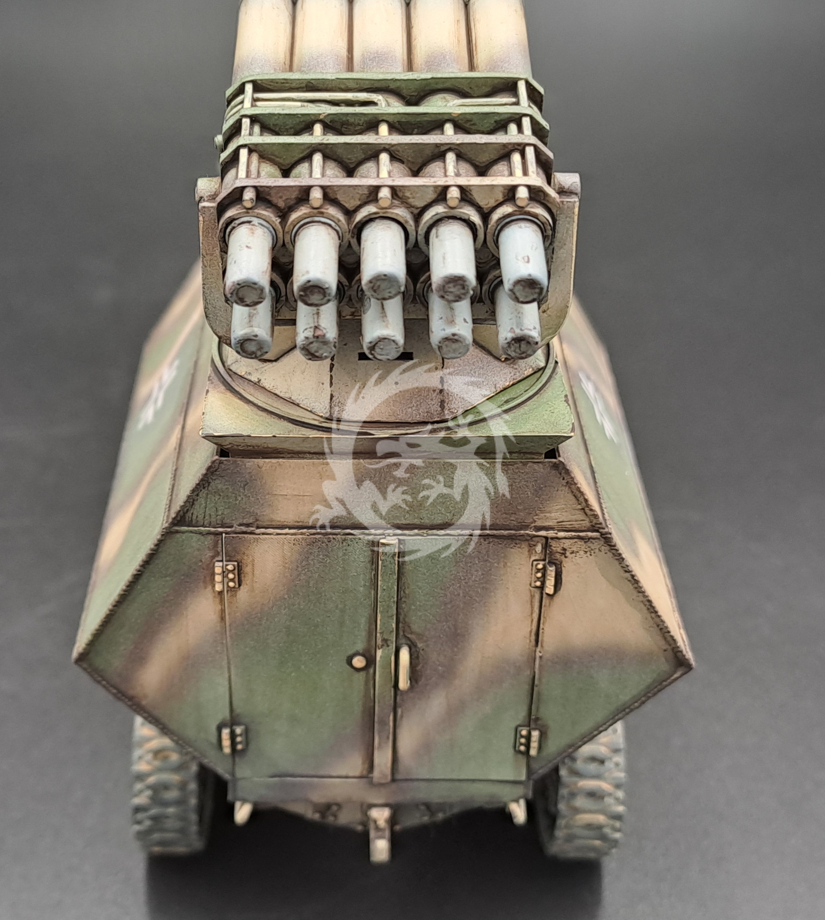 - Zastosowanie: Broń wsparcia artyleryjskiego, używana do ostrzału pozycji wroga z dużej odległości. Rakiety wywoływały charakterystyczny dźwięk, przez co wyrzutnie nazywano potocznie „krowami” lub „szafami”.