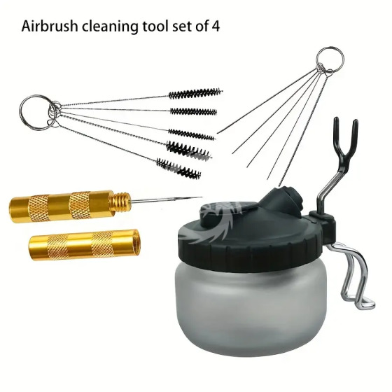 Pojemnik szklany do czyszczenia aerografu + zestaw czyscików