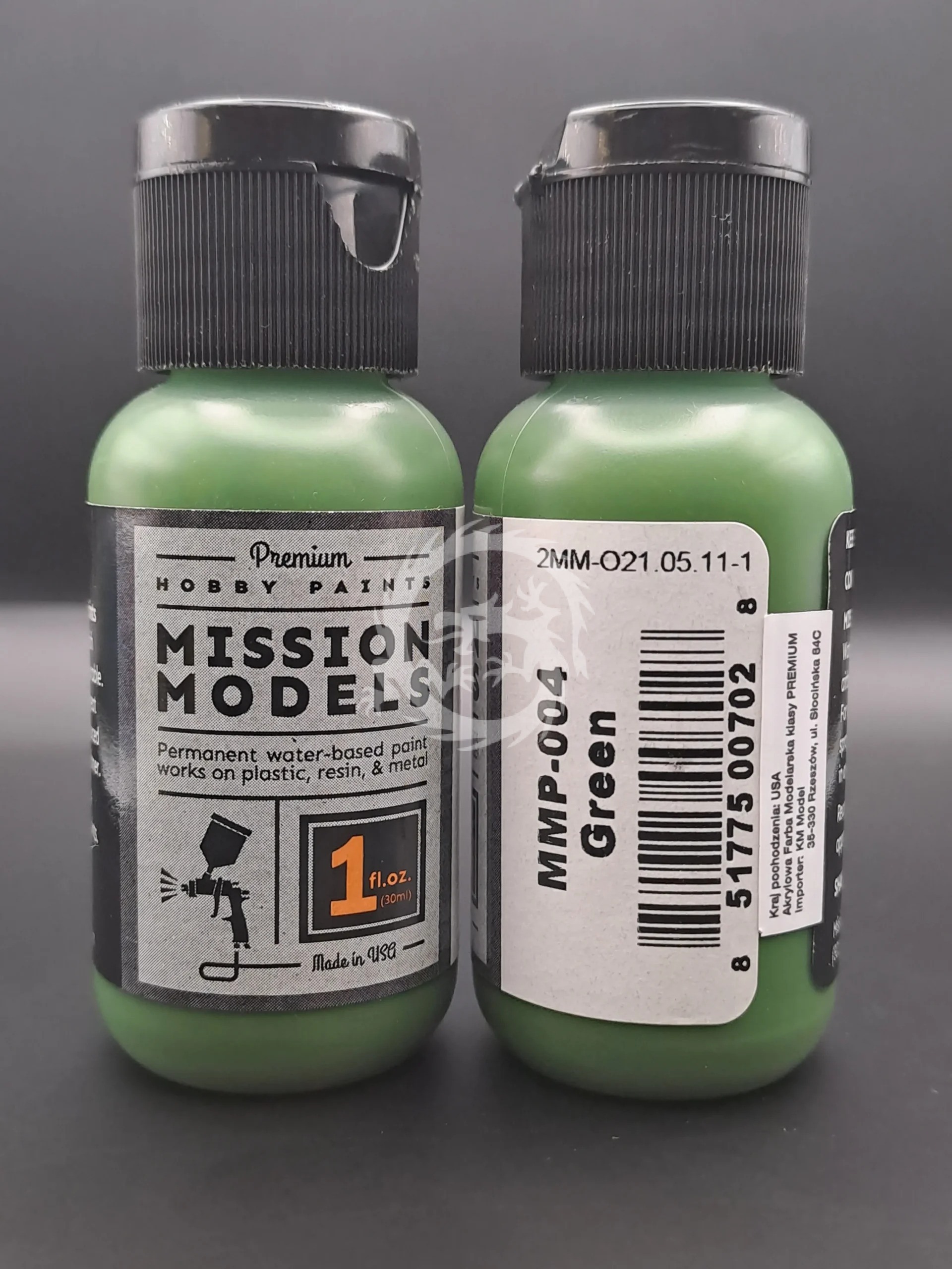 Dozowanie: Podczas mieszania farb zalecane 20-30% do 1 lub innymi słowy 2 do 3 kropli rozcieńczalnika Mission Models MIOMMA002 lub MIOMMA003 na 10 kropli farby. Ten sam stosunek dotyczy podkładów (primers). Są to idealne proporcje do uzyskania doskonałych rezultatów. Nadmiernie rozcieńczenie spowoduje zmniejszone krycie farby na powierzchni modelu. Zalecane jest dodanie 2 kropli Poly (MIOMMA001) w celu zwiększenia przepływu farby przez dyszę areografu oraz w celu podniesienia trwałości farby.