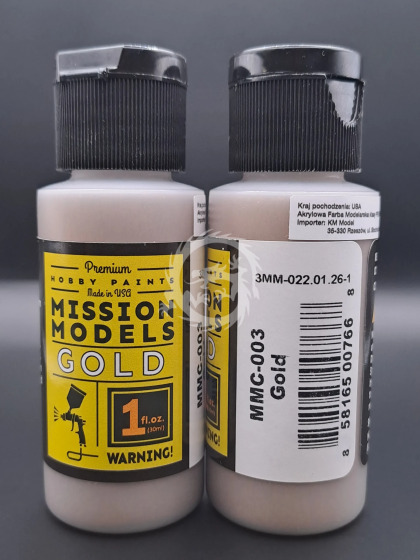 Chrome, Brass lub Gold Mission Models z Gloss Black Base (MIOMMGBB001) lub Gloss White Base (MIOMMGWB002) są bardzo łatwe w użyciu-posiada ergonomiczny dozownik. Ponadto każda nowa butelka rozcieńczalnika, farby, czy innego produktu MIssion Models posiada hermetyczne trwałe zamknięcie, które zapobiega przypadkowemu wylaniu się zawartości i jednocześnie stanowi 100% gwarancję, że produkt jest fabrycznie nowy i nie używany. Przed pierwszym użyciem należy je usunąć.