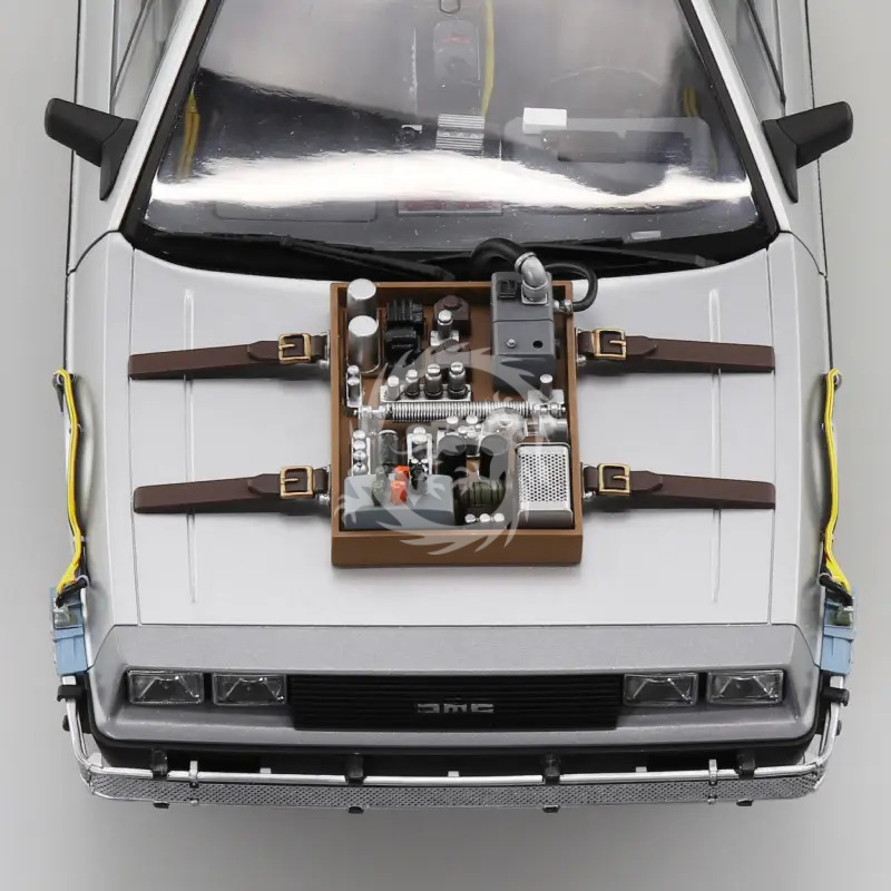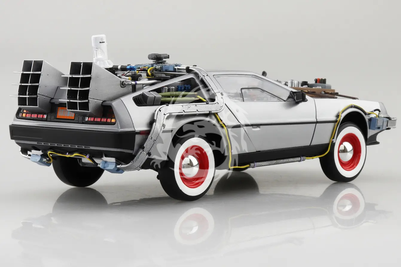 Aoshima prezentuje nam model w skali 1/24 charakterystycznego wehikułu czasu, który pojawił się we wczesnej części filmu „Powrót do przyszłości III” z 1990 roku. Został on naprawiony, aby przywrócić Doktora Browna, który został trafiony piorunem i przeniesiony do roku 1885! Ten model zawiera wiele nowo odlanych części i stanowi precyzyjną reprodukcję wehikułu czasu, wyposażonego w „skrzydło maski” wykonane z części z 1955 roku! Model ma białe, wstążkowe opony, a zestaw wiernie oddaje podniesioną wysokość pojazdu, aby mógł poruszać się po nierównym terenie z 1885 roku. Kultowe drzwi typu „skrzydło mewy” można otwierać i zamykać