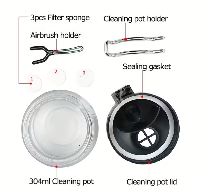 Uniwersalny pojemnik do czyszczenia aerografu plus zestaw do czyszczenia gaźnika , pistoletu natryskowego, 5 igieł czyszczących + 5 szczotek nylonowych + 1 narzędzie naprawcze, przeznaczony do usuwania farby i brudu z dysz