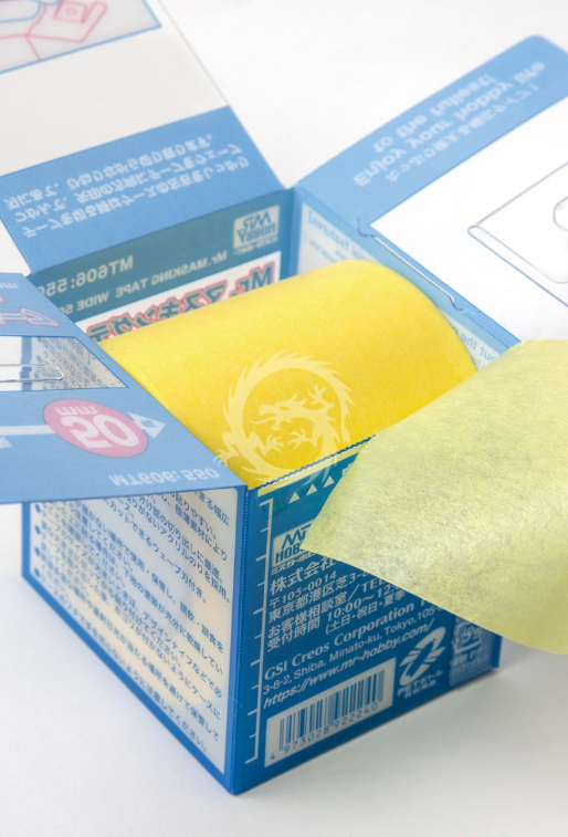 Modelarska, impregnowana taśma maskująca o jasno żółtym kolorze, wykonana ze specjalnie przetworzonego papieru japońskiego (ang. washi paper) o długości całkowitej 18 m oraz bardzo dużej szerokości aż 50 mm.