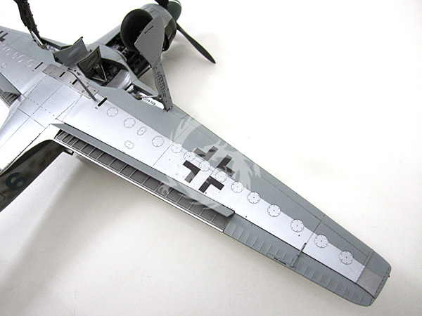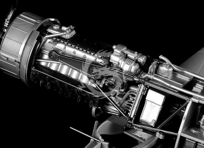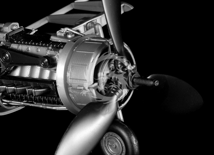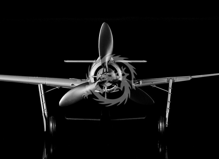 Focke Wulf Ta-152 to niemiecki, jednosilnikowy myśliwiec przechwytujący o konstrukcji w pełni metalowej, w układzie dolnopłata z końcowego okresu II wojny światowej. Oblot protypu miał miejsce 12 lipca 1944 roku, a do jednostek liniowych trafił w styczniu 1945 r. Ta-152 stanowił odpowiedź na alianckie rajdy bombowe nad III Rzeszą i był projektowany do walki z ciężkimi bombowcami oraz myśliwcami eskorty, głównie z P-51 oraz P-47. Pomimo zewnętrznego podobieństwa nie był kolejną wersją Fw-190, ale zupełnie nowym samolotem, wykorzystującym jednak bardzo wiele podzespołów z Fw-190. Rolę jednostki napędowej pełnił silnik Jumo 213-1 o mocy startowej 1880KM oraz maksymalnej 2250KM. Pierwotnie projektowano stworzenie całej rodziny Ta-152 o funkcjach myśliwskich, myśliwsko-bombowych oraz rozpoznawczych, ale seryjnie produkowano tylko wersję Ta-152-H, która była klasycznym myśliwcem. W związku z nalotami alianckimi oraz pogarszającą się sytuacją zaopatrzeniową, udało się stworzyć jedynie 67 egzemplarzy Ta-152. W toku krótkiej służby bojowej Ta-152 okazał się maszyną co najmniej dorównującą osiągami maszynom amerykańskim, a na kilku płaszczyznach nawet je przewyższającą (krótszy promień skrętu, lepsze wznoszenie). Dane techniczne: długość: 10,82m, rozpiętość skrzydeł: 14,44m, wysokość: 3,36m, prędkość maksymalna: 750km/h, prędkość wznoszenia: 16,7 m/s, zasięg maksymalny: 1500km, pułap maksymalny 13500m, uzbrojenie: stałe- pojedyncze działko kal.30mm oraz dwa działka kal.20mm.