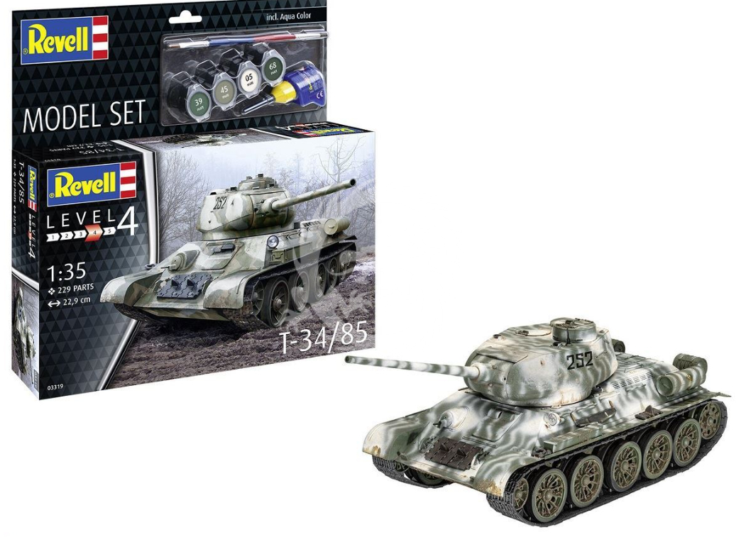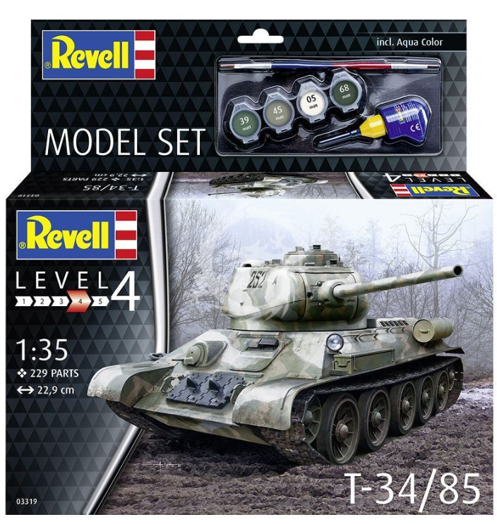 Pierwsze prototypy powstały w latach 1937-1940, a produkcja seryjna na terenie ZSRR trwała w latach 1940-1957. W jej toku powstało ok. 84.000 wozów tego typu, co czyni z T-34 jeden z najliczniej produkowanych czołgów w historii! Napęd zapewniał pojedynczy silnik V-2-34 o mocy 500 KM. Długość wozu – w wersji T34/76 -wynosiła 6,68 m, przy szerokości rzędu 3 metrów. Uzbrojenie składało się z działa F-34 kal. 76,2 mm oraz dwóch karabinów maszynowych DT kal. 7,62 mm. W wersji T-34/85 uzbrojeniem głównym była armata ZIS-S-53 kal. 85 mm.