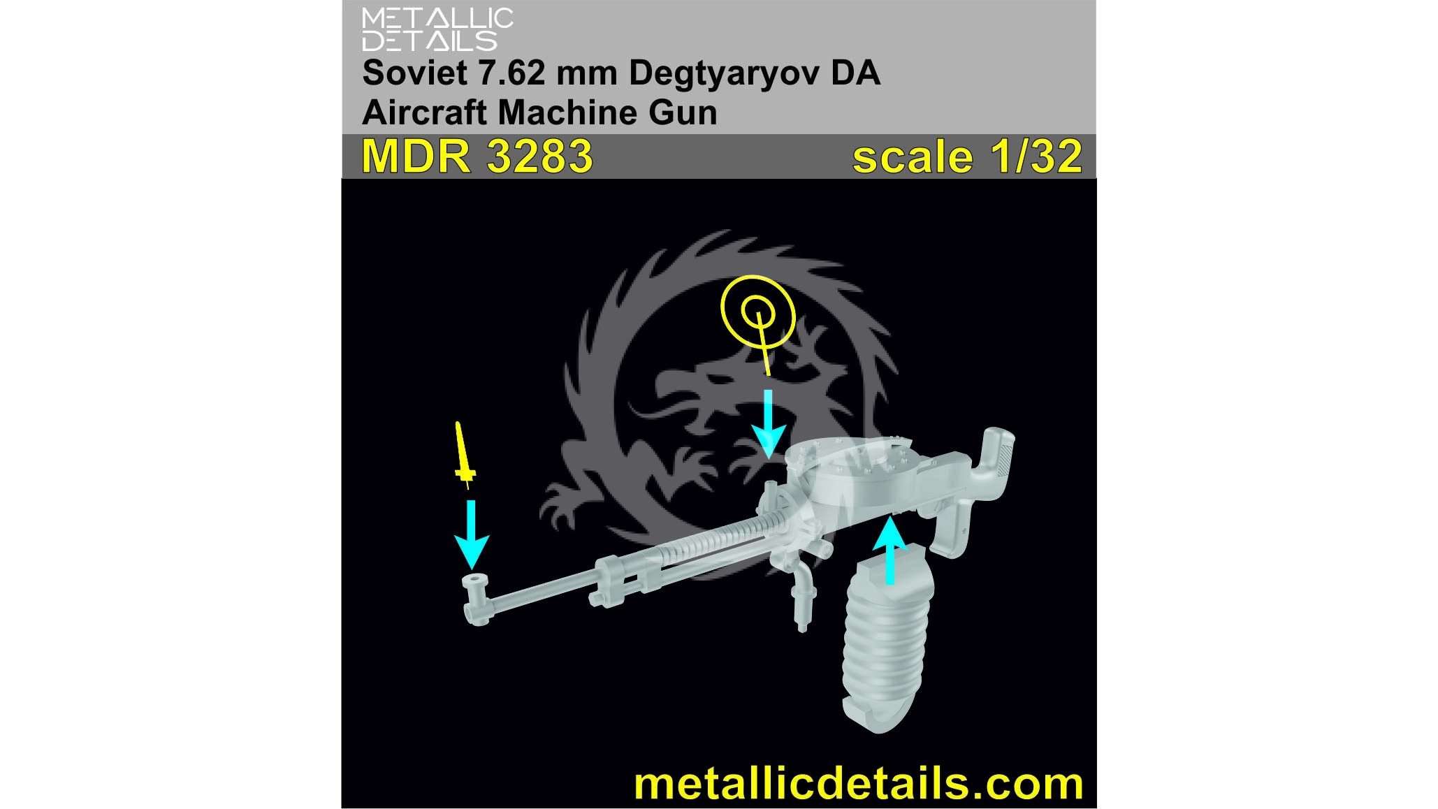 Nadaje się do modernizacji modeli samolotów w skali 1/32 wyposażonych w karabiny maszynowe Diegtiariow DA, w tym: