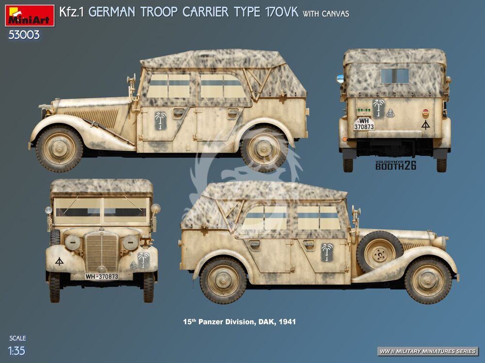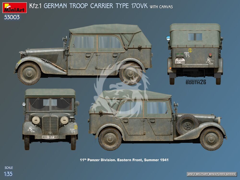 PRZEDSPRZEDAZ - Kfz.1 German Troop Carrier Type 170VK w/Canvas - MiniArt 53003 skala 1/35