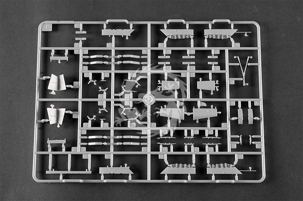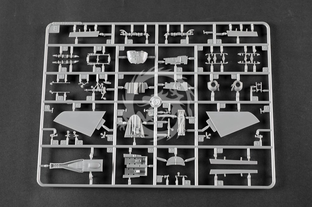 - Zestaw zawiera wszystkie niezbędne elementy do zbudowania modelu, w tym plastikowe ramki z częściami, elementy fototrawione, kalkomanie z oznaczeniami oraz szczegółowe instrukcje montażowe.
