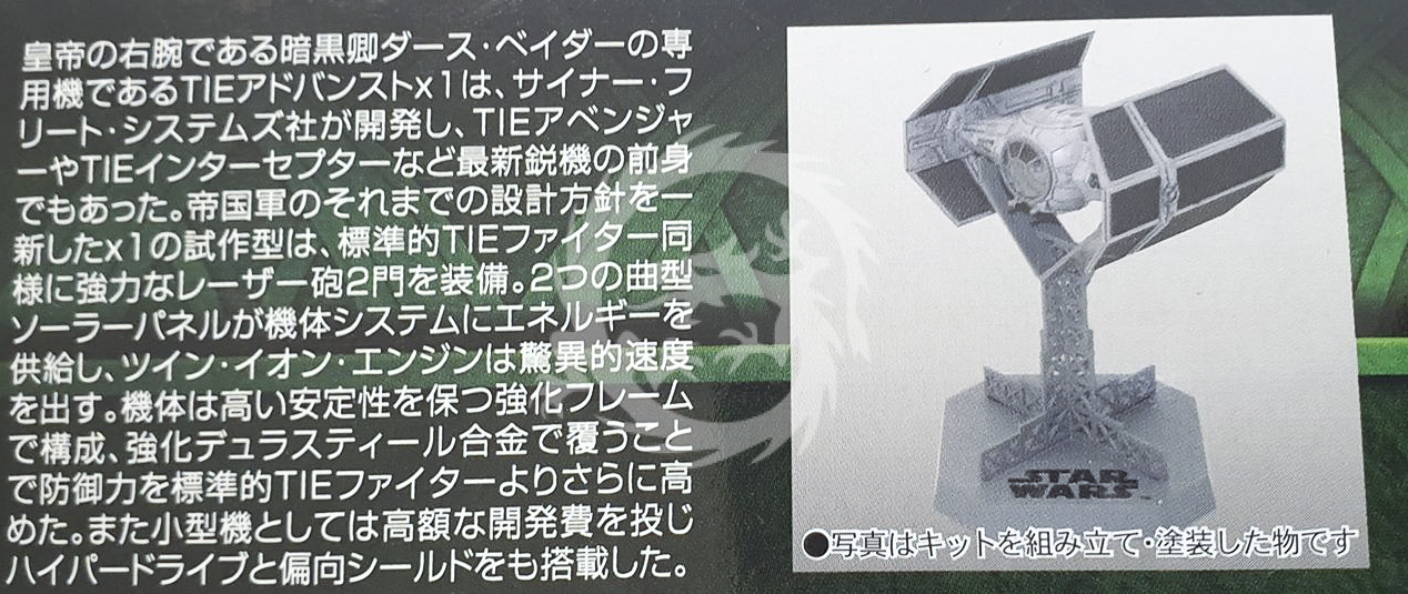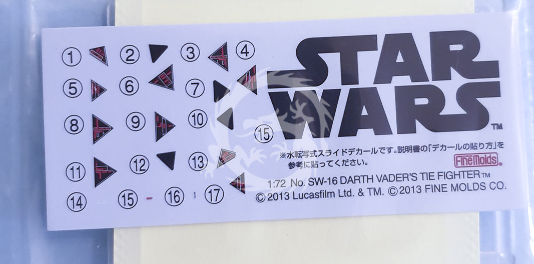 Z okazji 35 rocznicy japońskiego wydania Gwiezdnych wojen , Fine Molds wypuścił w skali 1/72 - TIE Fightera Darth Vadera! Zestaw zawiera stojak, maski do malowania (wymagane przycinanie) oraz figurki siedzące i stojące Vadera.